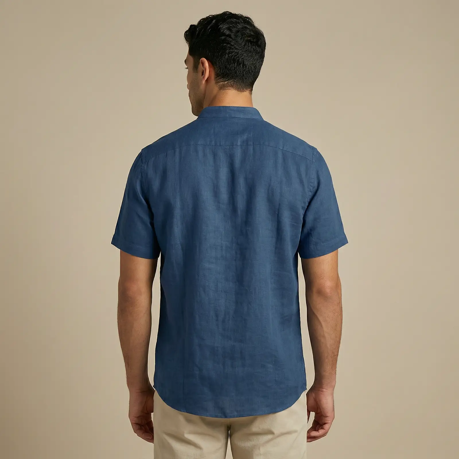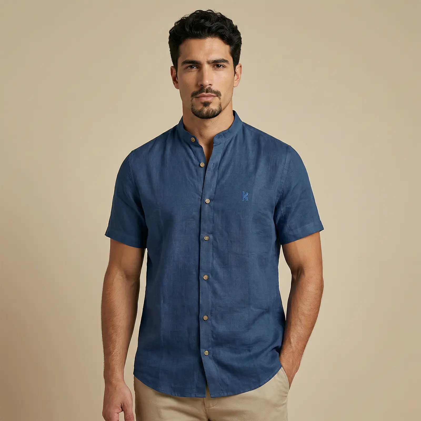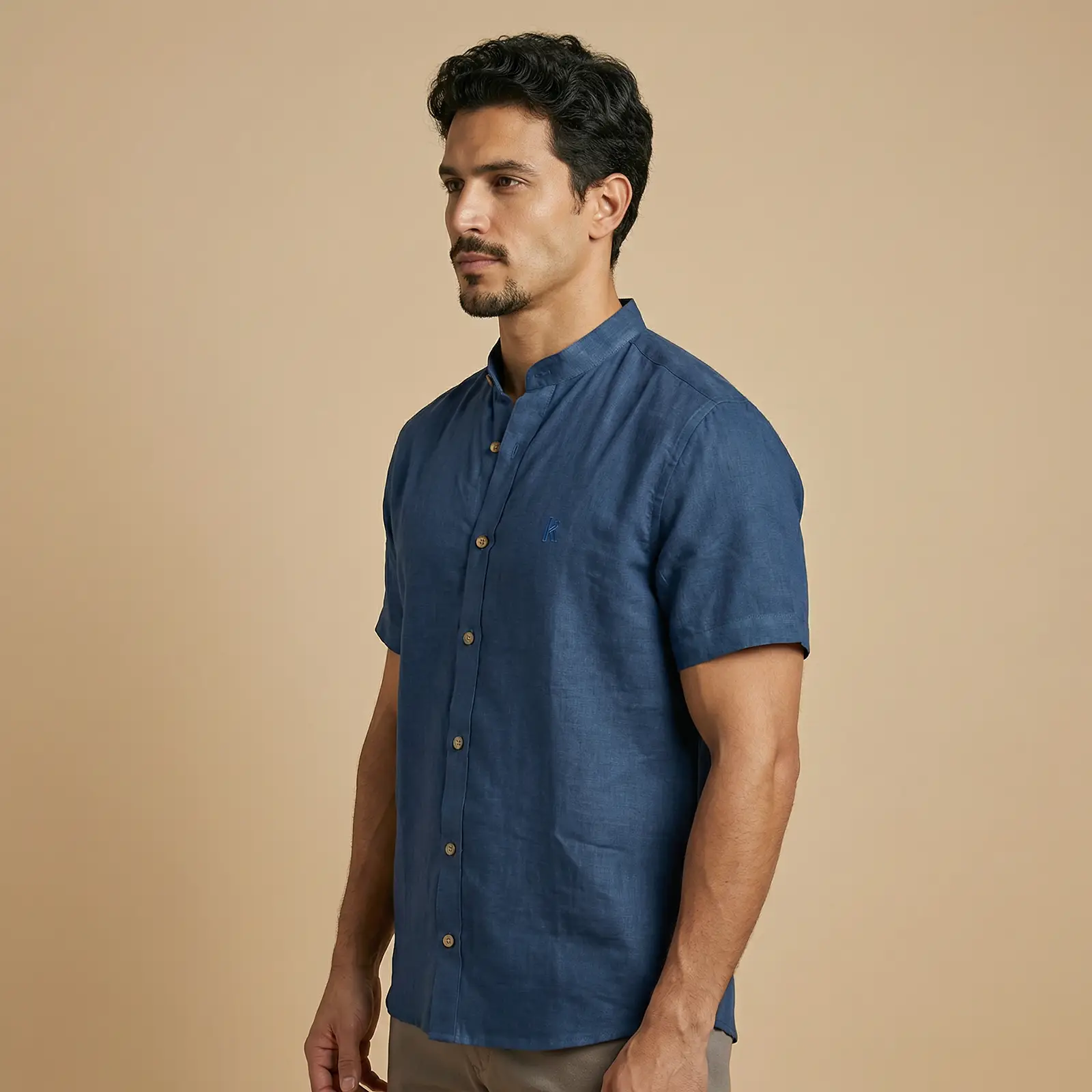 Una prenda sobria y contemporánea que combina la elegancia del cuello neru con la profundidad del azul oscuro. Minimalista, versátil y con carácter.