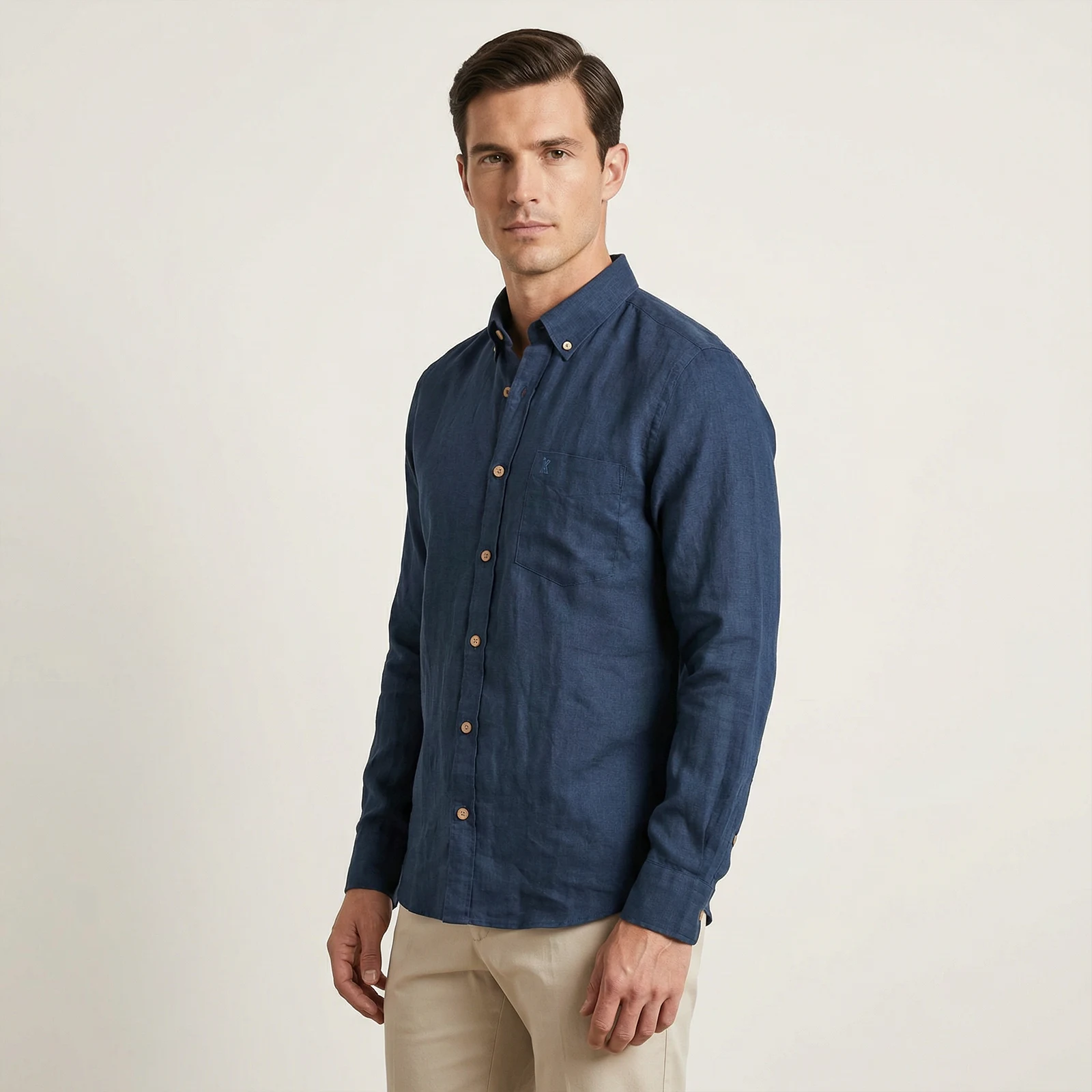 Una camisa esencial que equilibra estilo, frescura y sofisticación natural.